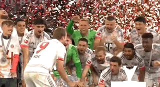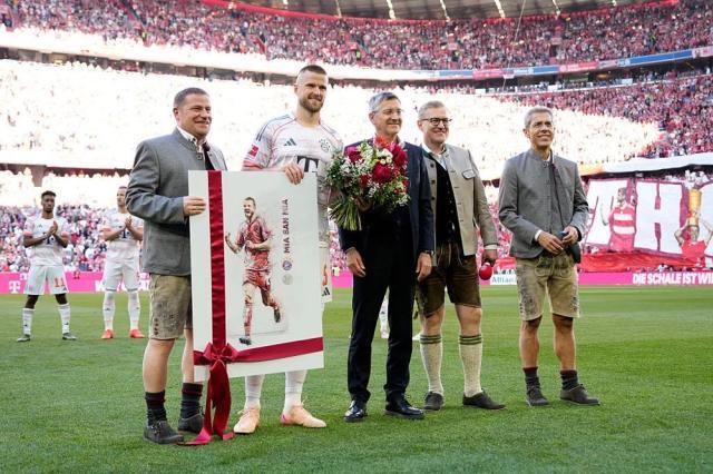 德甲第33轮,拜仁慕尼黑本赛季最后一个主场比赛,迎战门兴格拉德巴赫。凭借凯恩和奥利塞的进球,拜仁主场2-0战胜门兴。赛前,安联竞技场为穆勒和戴尔举行了告别仪式;赛后,全队举起了冠军奖盘。