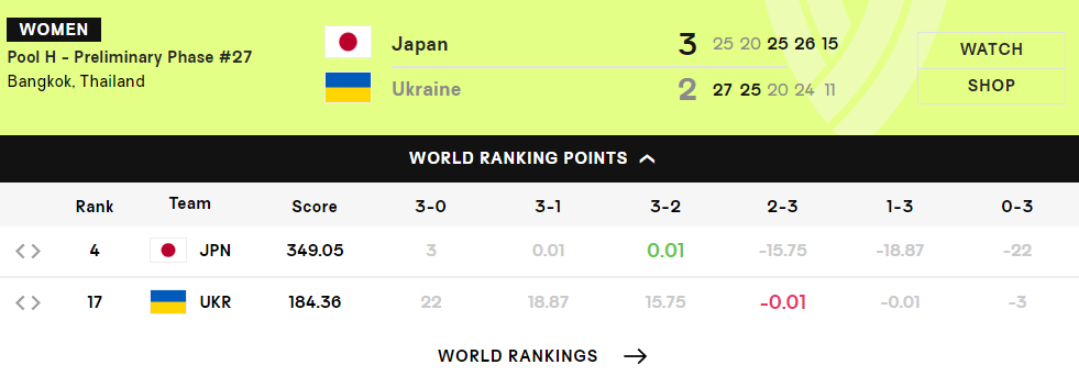 这场比赛因为两队的世界排名差距较大,如果日本女排真是0-3不敌乌克兰,那么日本女排要-22分,好在后面三局日本女排及时找回状态。