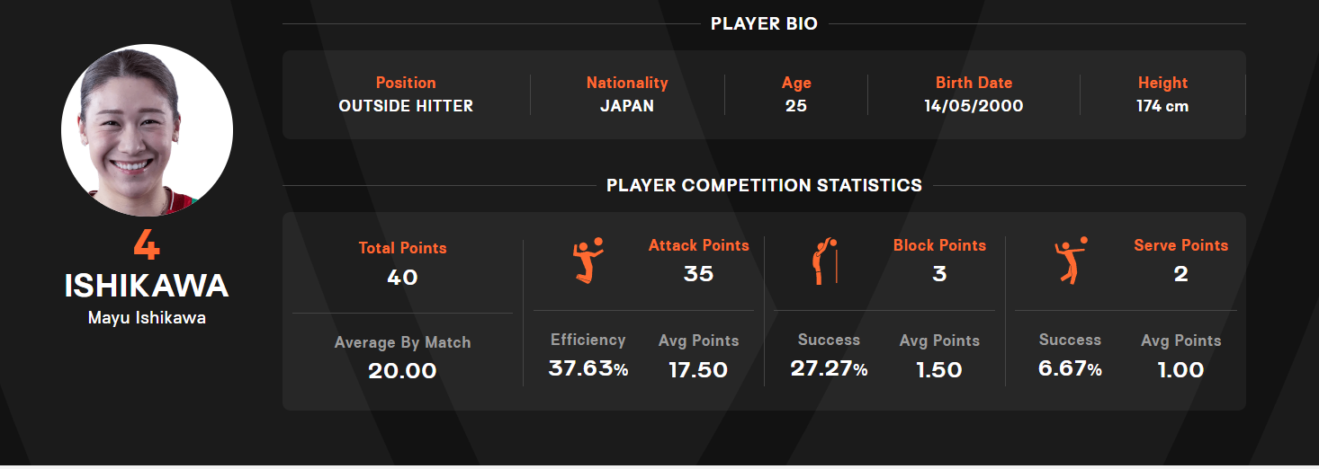 全场比赛石川真佑65扣26中+3拦+10失误,拿到29分,扣球成功率40%,石川真佑为了赢得这场比赛真是付出一切,了解石川真佑的球迷应该知道,她从日本世少赛、世青赛期间就一直都是球队核心。